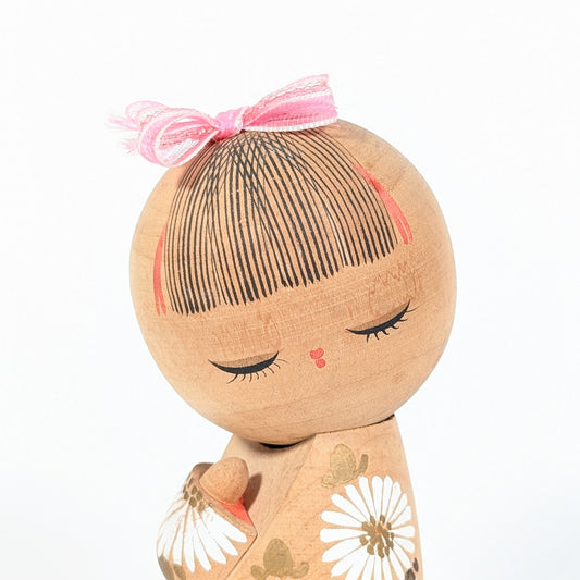Kokeshi japonaise vintage- style sōsaku 創作 – Aoki Ryōka 青木蓼華 – Hinagiku – 15 cm