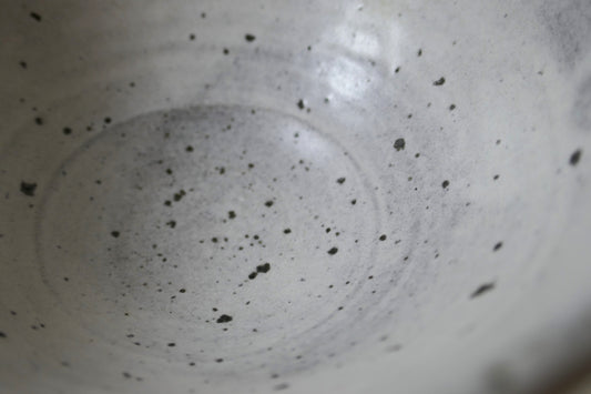 Bol à thé japonais Chawan en grès foncé à glaçure blanche – signé Muryōkōin 無量光院