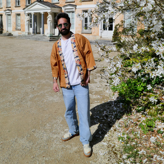 Haori "Aki no samekomon" 秋の鮫小紋 – Pointillés d’automne - veste kimono moderne by KOGEDO l'Atelier - L/XL